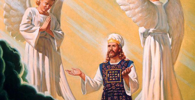 “E, eis que vinha nas nuvens do céu Um como o Filho do homem; e dirigiu-Se ao Ancião de Dias, e O fizeram chegar até Ele. E foi-lhe dado o domínio e a honra, e o reino, para que todos os povos, nações e línguas O servissem; o Seu domínio é um domínio eterno, que não passará.” Dan. 7:13 e 14. A vinda de Cristo aqui descrita não é a Sua segunda vinda à Terra. Ele vem ao Ancião de Dias, no Céu, para receber o domínio, a honra, e o reino, os quais Lhe serão dados no final de Sua obra de mediador. É esta vinda, e não o seu segundo advento à Terra, que foi predita na profecia como devendo ocorrer ao terminarem os 2.300 dias, em 1844. Assistido por anjos celestiais, nosso grande Sumo Sacerdote entra no lugar santíssimo, e ali comparece à presença de Deus a fim de Se entregar aos últimos atos de Seu ministério em prol do homem, a saber: realizar a obra do juízo de investigação e fazer expiação por todos os que se verificarem com direito aos benefícios da mesma.
