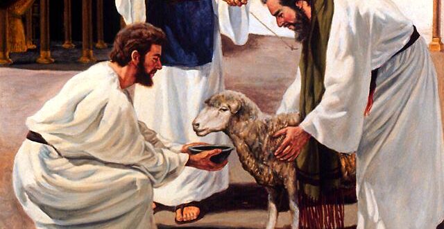 No cerimonial típico do Antigo Testamento, a ministração do sangue dos animais sacrificados era geralmente restrita ao próprio altar de holocausto, localizado no pátio do santuário. O sangue podia ser aspergido “em redor sobre o altar” (Lv 1:5 e 11), posto “sobre os chifres do altar” (Lv 4:25, 30 e 34; 8:15; 9:9; 16:18), escorrido “na parede do altar” (Lv 1:15; 5:9) ou derramado “à base” daquele altar (Lv 4:7, 18, 25, 30 e 34; 5:9; 8:15; 9:9). Porém, nos casos especiais de pecado “por ignorância” de algum “sacerdote” ou de “toda a congregação de Israel”, parte do sangue de um novilho sacrificado era levada para dentro do Lugar Santo, aspergida sete vezes “diante do véu do santuário” (Lv 4:6 e 17) e posta “sobre os chifres do altar do incenso” (Lv 4:7 e 18). O restante do sangue era derramado “à base do altar de holocausto” (Lv 4:7 e 18). Já no cerimonial anual do Dia da Expiação o sangue do novilho e o do bode para o Senhor eram aspergidos no Lugar Santíssimo sobre o “propiciatório” e “diante dele” (Lv 16:14 e 15).